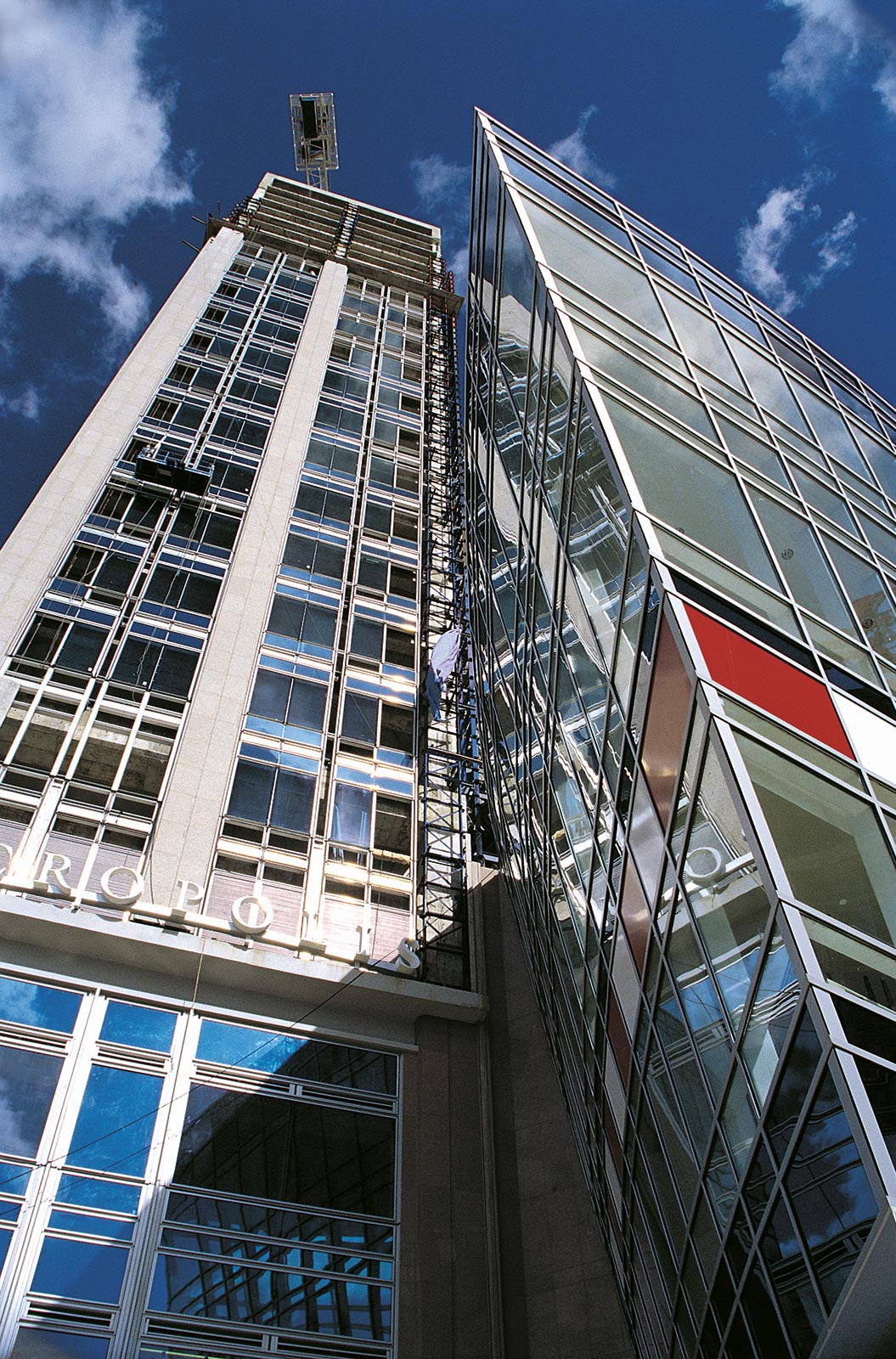 Entre ambas estructuras, la de la plaza y la de la torre, se introdujo una junta de expansión debido al cambio de materiales y la diferencia de altura que existe entre las dos.