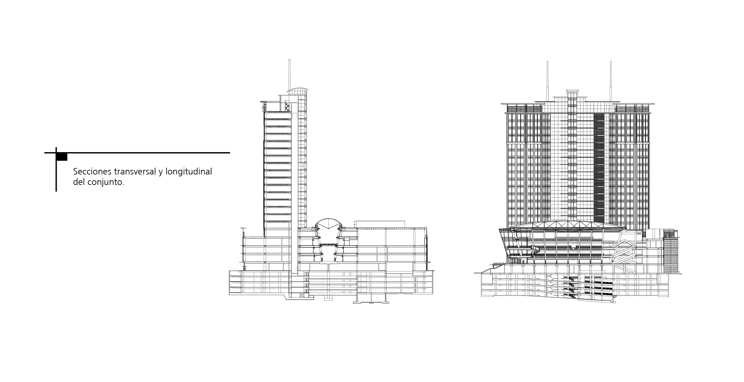 Secciones transversal y longitudinal del conjunto.