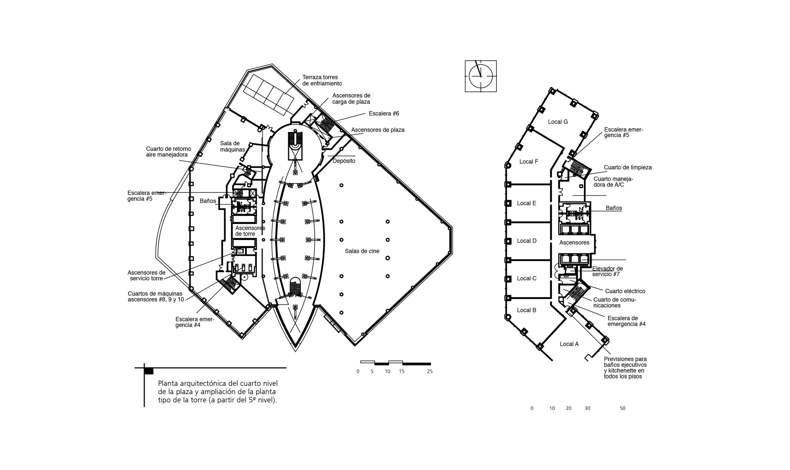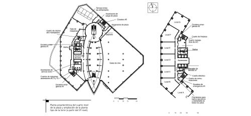 Planta arquitectónica del cuarto nivel de la plaza y ampliación de la planta