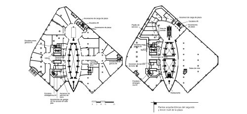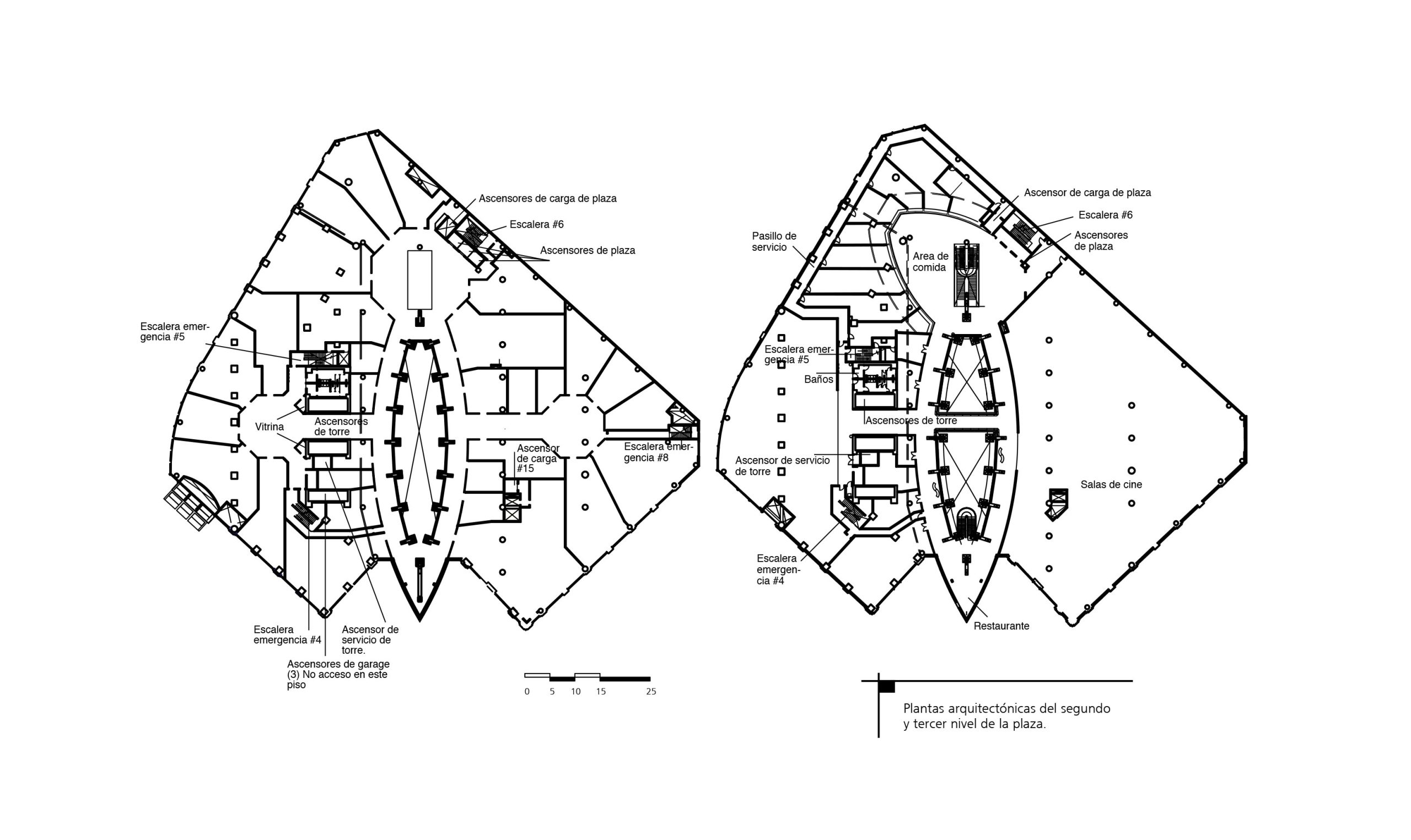 Plantas arquitectónicas del segundo y tercer nivel de la plaza.