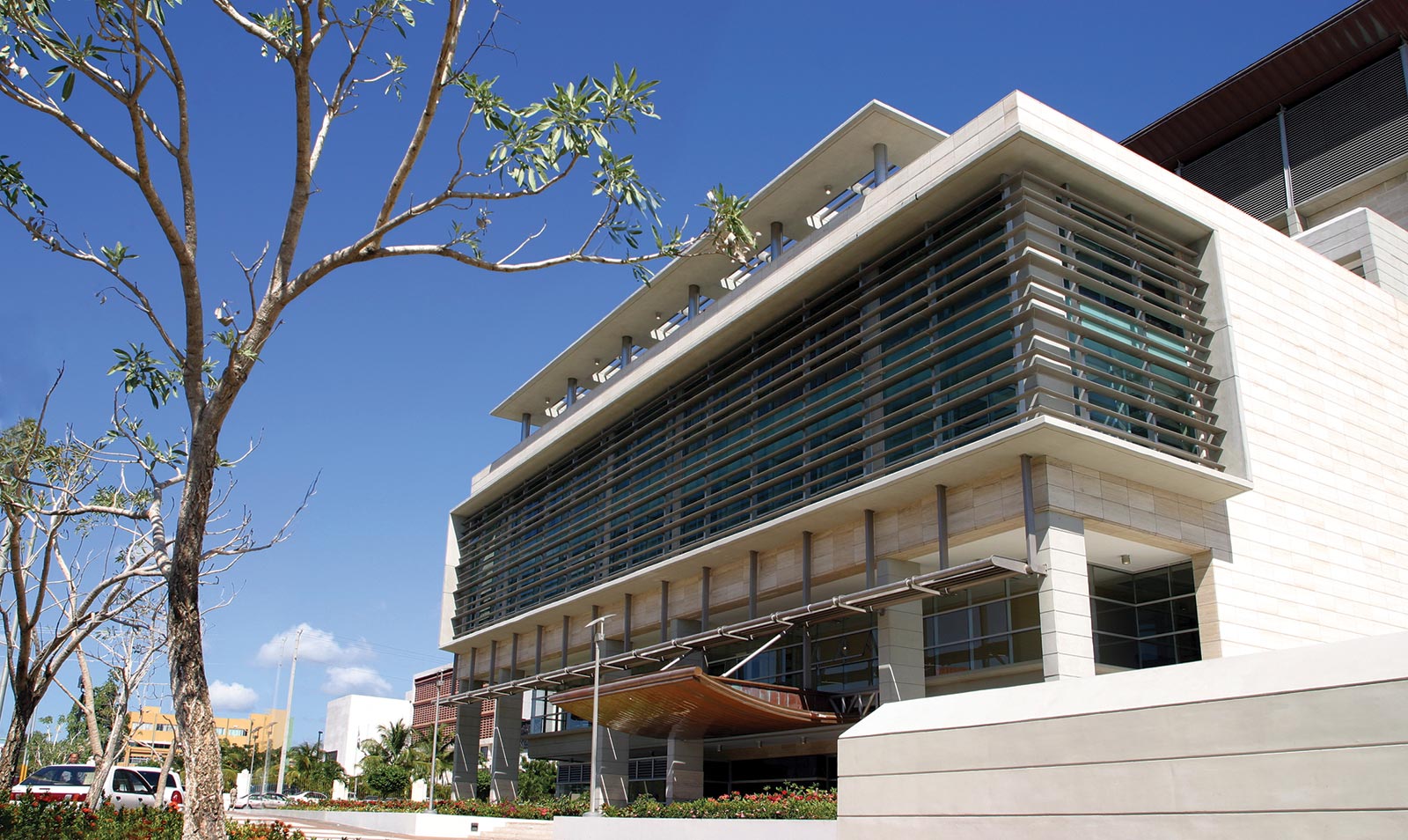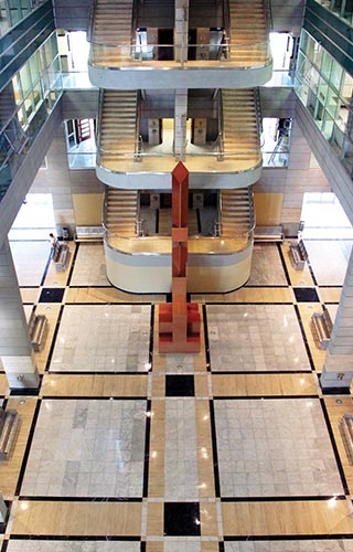 Estas instalaciones se organizan alrededor del atrio central que alcanza una altura de siete niveles. La naturaleza cívica de todas estas actividades le confiere un carácter de Plaza a este primer nivel, cuyo acceso principal se realiza desde el boulevard Jiménez Moya. La extensión de la edificación determinó, además, otras alternativas de ingreso.