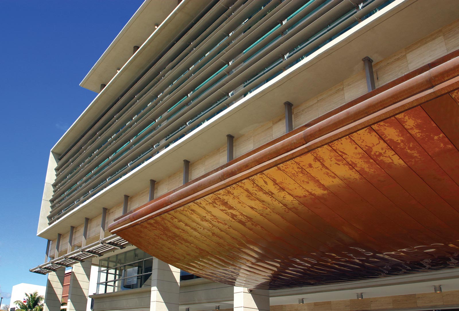La estructura principal de la obra fue realizada en hormigón armado vaciado in situ, excepto aquellos entrepisos no expuestos al clima, que se dispusieron en viguetas doble “T” prefabricadas. Fueron colocadas algunas estructuras de acero metalizado cubiertas de cobre con formas geométricamente definidas por conos, pirámides truncadas y ojivas en los techos y en las marquesinas de la parte este y oeste, aligerando la vista del hormigón estructural que constituye la mayor parte de la edificación.