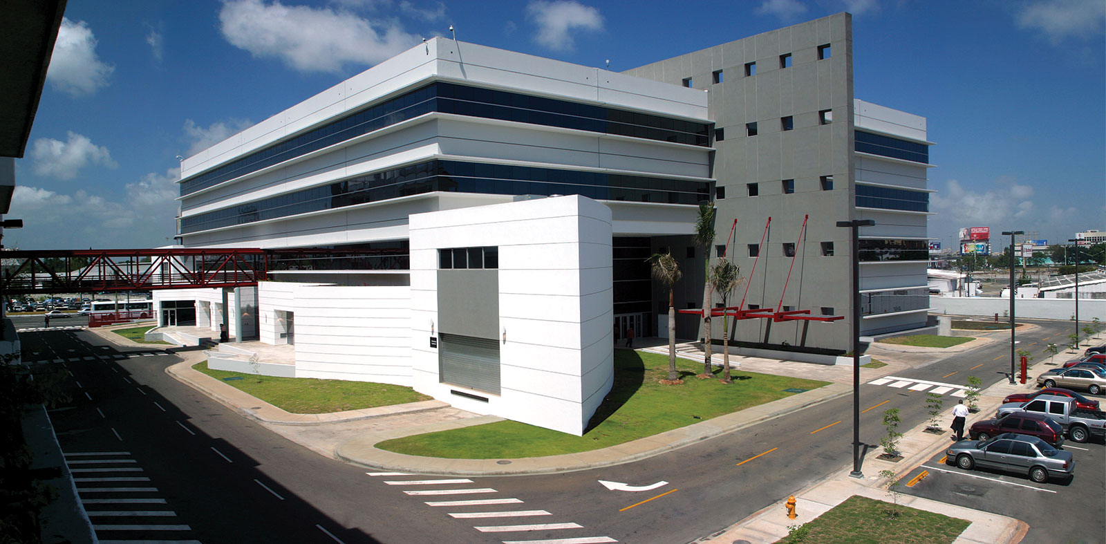 Concebida como sede administrativa de alta eficiencia, esta edificación introdujo en Santo Domingo un modelo corporativo basado en simplicidad formal, flexibilidad espacial y rigor tecnológico. La composición geométrica pura, acentuada por quiebrasoles y ventanas continuas, resalta la horizontalidad y proyecta una imagen moderna y austera. El uso de prefabricados en los muros exteriores agilizó el proceso constructivo y permitió una terminación precisa. Un núcleo central concentra circulaciones y servicios, con plantas abiertas adaptables a estaciones modulares. El vestíbulo de doble altura organiza accesos públicos y privados, e integra arte y tecnología. Sistemas antisísmicos, eficiencia energética y seguridad avanzada posicionaron el edificio como referente de la arquitectura empresarial dominicana de inicios del siglo XXI.