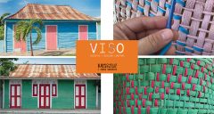 La luminaria Geométrica está inspirada en la metamorfosis de la hoja de la palma caribeña y está hecha con palma de guano por artesanos dominicanos; junto a los revestimientos de ecocemento, produce un interesante diálogo entre lo industrial y lo artesanal. Por su parte, la colección Caleidoscopio representa los paisajes de la República Dominicana, los cuales vistos a través de un caleidoscopio se convierten en patrones geométricos combinables. Está compuesta por mesas de diferentes alturas y bandejas que pueden ser utilizadas como elementos decorativos de pared realizadas con madera y el mismo material de cemento.