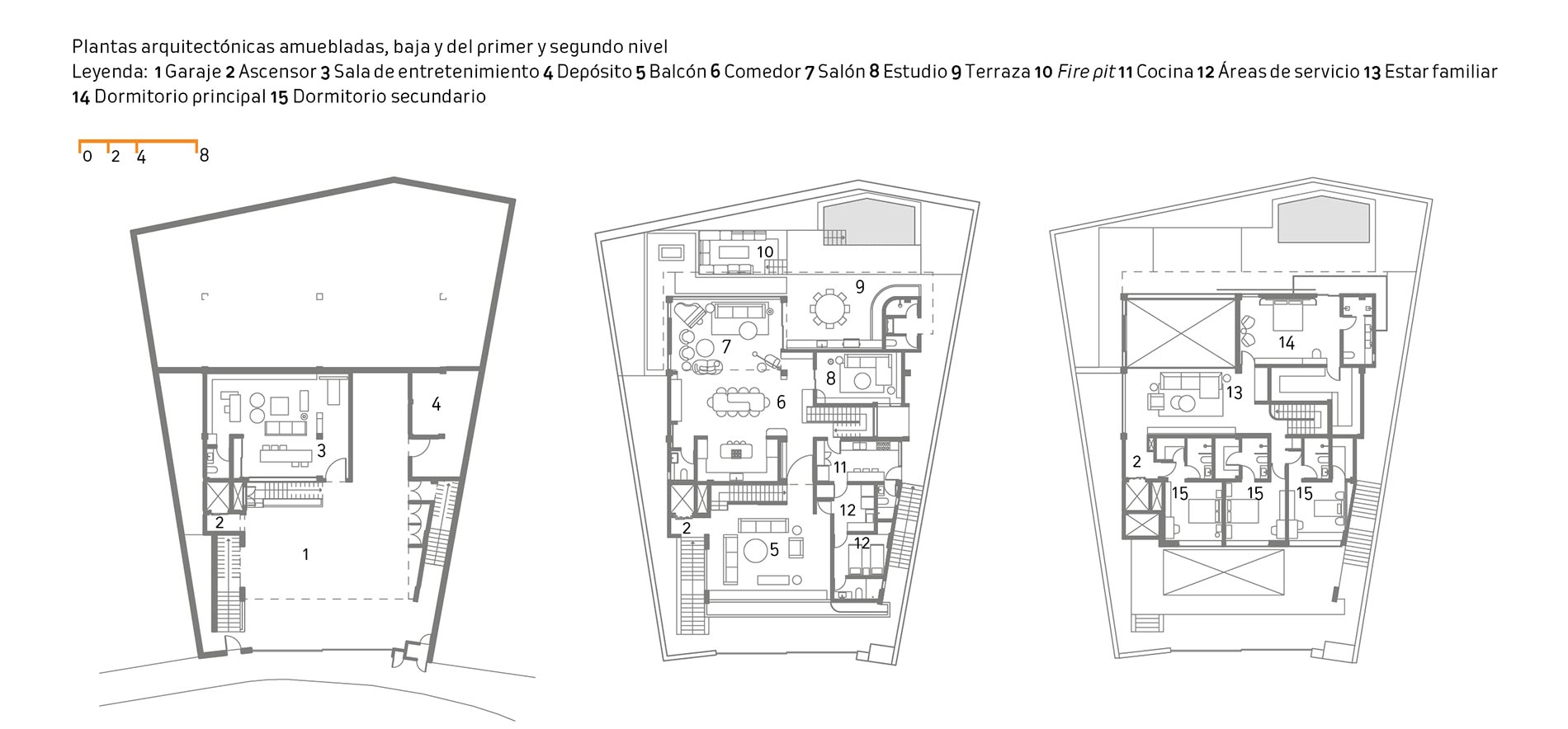 La organización programática se despliega en tres niveles, desde un estudio ejecutivo hasta áreas sociales abiertas y terrazas, una arquitectura contemporánea que equilibra estética, confort y funcionalidad en cada detalle.
