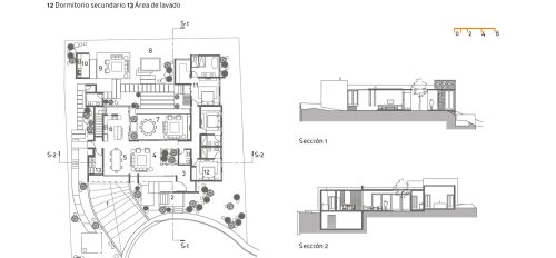 De esta premisa surge la idea de elevar la residencia en el punto intermedio de la topografía accidentada del terreno, lo que permitió aprovecharlo para crear un espacio de estacionamiento semisubterráneo. Al desarrollarse en un solo nivel, el proyecto logra una conexión fluida y directa entre los espacios internos y la naturaleza que los rodea.