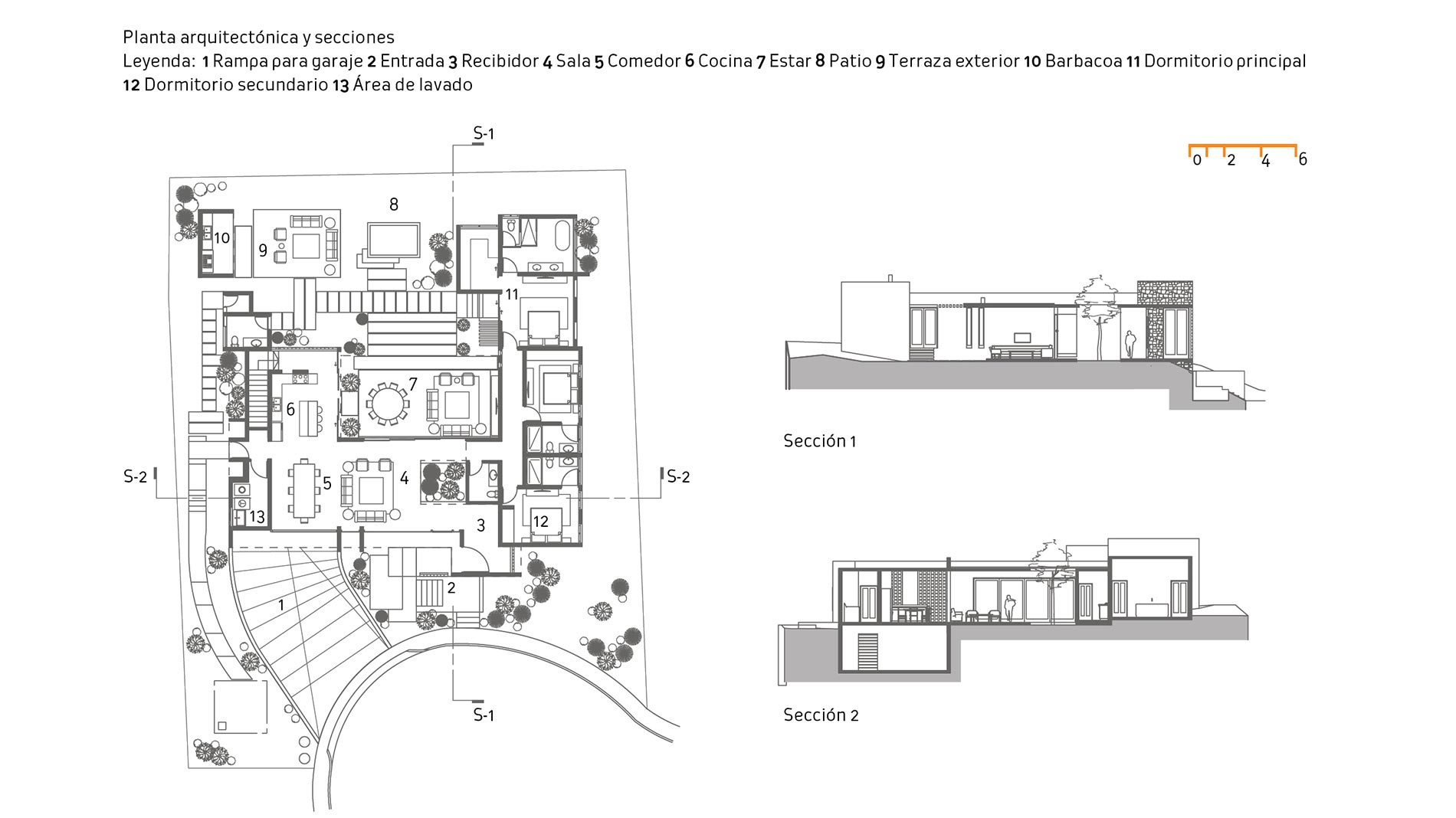 De esta premisa surge la idea de elevar la residencia en el punto intermedio de la topografía accidentada del terreno, lo que permitió aprovecharlo para crear un espacio de estacionamiento semisubterráneo. Al desarrollarse en un solo nivel, el proyecto logra una conexión fluida y directa entre los espacios internos y la naturaleza que los rodea.