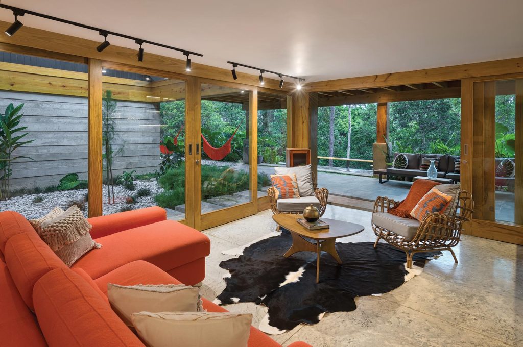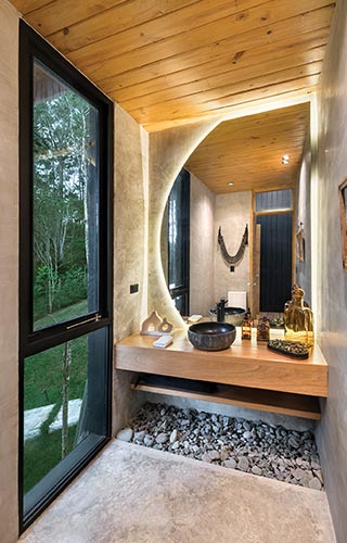 La casa funciona como una galería de 360 grados. Cada ambiente, sin importar su escala, conecta con el exterior a través de vistas enmarcadas, ventilación cruzada y la presencia permanente de la luz cambiante del trópico. Más que un refugio frente a la naturaleza, la vivienda se convierte en un portal hacia ella. El aire fresco, los aromas del bosque y el canto de los pájaros son parte integral de la experiencia diaria.