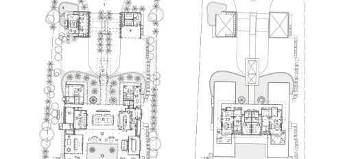 El esquema en forma de H estructura la propuesta y permite que la arquitectura dialogue con el paisaje a través de grandes aberturas, jardines autóctonos y espejos de agua que difuminan los límites entre interior y exterior. Desde el acceso principal, un pasillo flanqueado por palmas y espejos de agua marca el inicio de un recorrido que se despliega de manera secuencial, destacando la luz natural, la transparencia y la continuidad espacial. La experiencia del visitante se concibe como una transición fluida: del umbral solemne del acceso a la amplitud de los espacios sociales y, finalmente, a la intimidad de las áreas privadas.