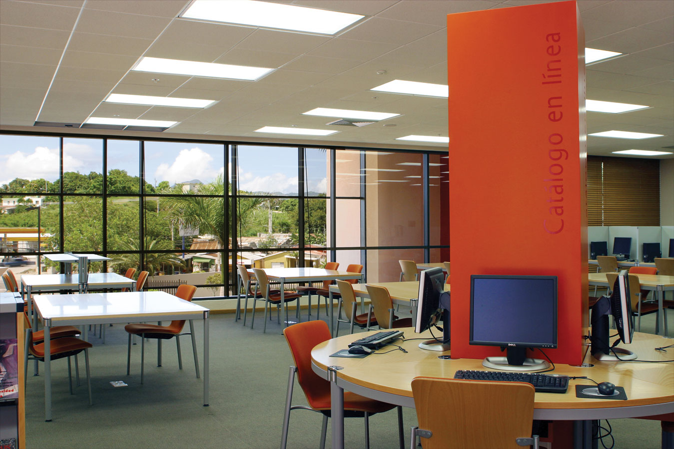 La mediateca reúne la colección bibliográfica y documental, ofreciendo áreas de lectura, cabinas de consulta digital y espacios para investigadores. El mobiliario, de diseño contemporáneo, refuerza la funcionalidad y el carácter especializado del espacio.