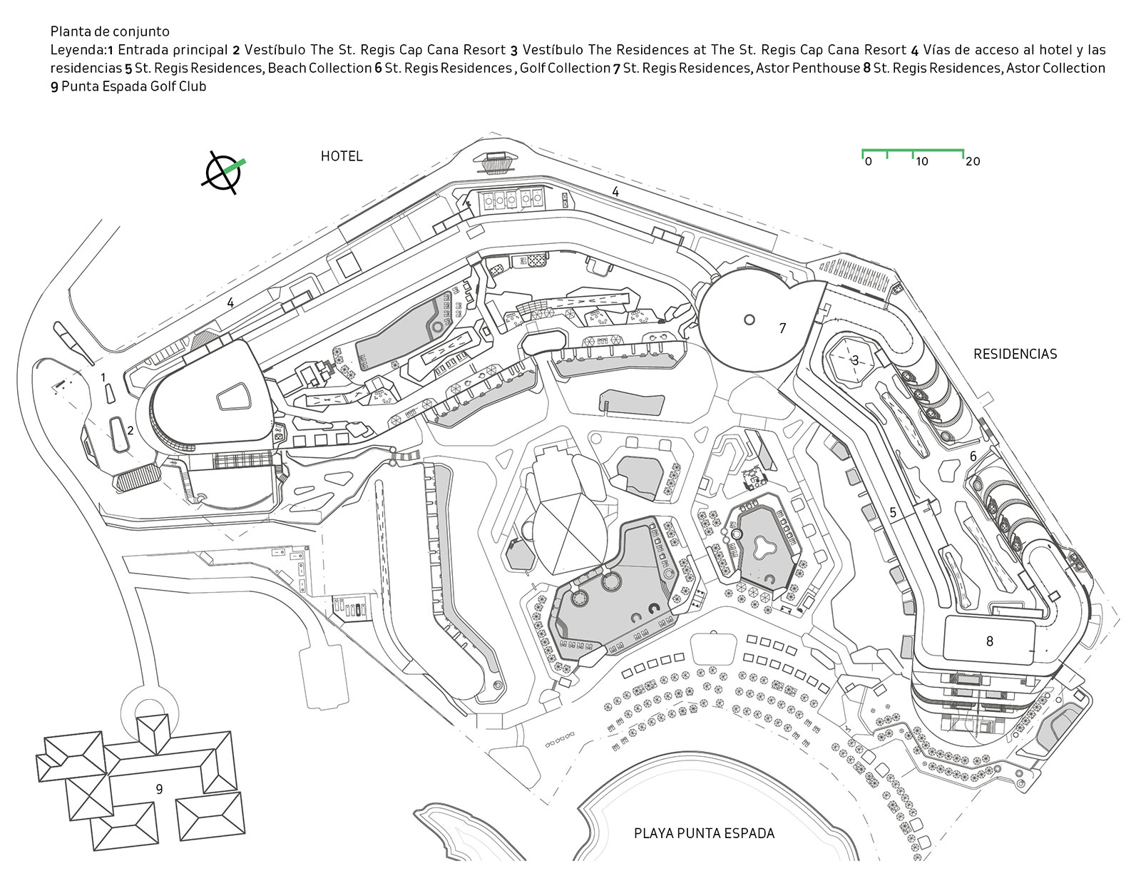 Dirección Punta Espada, Cap Cana. Área de lote 64,906 m². Promotor Campagna Ricart y Asociados y Pioneer Investment Funds. Diseño arquitectónico Arq. Alejandro Acebal, Acebal Canney Arquitectos y Asociados. Colaboradores Laura Leger, Jessy Tatis, Vicky Pérez Mirambeaux, Stefany Taron, Lourdes Montes de Oca, Vanessa Heredia, Pamela Polanco, Leonor Cordero, María Andreína Pérez, Nathaly Araujo y Silvia Caradonna. Diseño y arquitectura de interior Chapi Design y AG Interiores, Alexandra Guzmán. Colaboradores María Elena Liriano, Liliana Ortiz, María Laura Báez, Paola Méndez, y Marlene Quiñones. Paisajismo Estudio PWP. Diseño de iluminación Inverse Lighting. Diseño gráfico Grupo Regio. Estructural Ing. Reginald García. Eléctrico Conelca. Sanitario Piarcon. Sistemas de a/a Cemca. Contratista general Campagna Ricart y Asociados. Colaboradores Ejecución Dino Campagna, Julio Bobadilla, Gianmarco Campagna, Ana Almonte, Starling Morel, Asael Muñoz, Aldo Boyá, Pedro Fernández, Laura Pérez, María Elena Liriano y Liliana Ortiz. Supervisión TLDI.