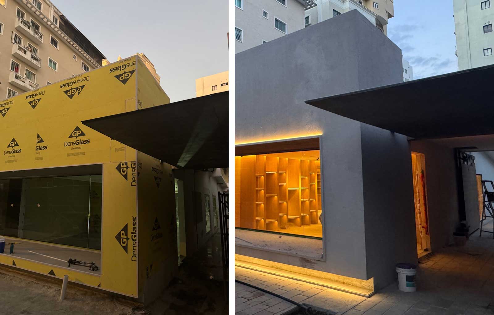 En el ámbito de la readecuación arquitectónica, Infracero participó en la transformación de El Estudio Store, en el ensanche Serrallés. La intervención incluyó reforzamientos estructurales para abrir espacios interiores en una edificación existente, así como la incorporación de un volumen flotante en fachada. Destaca especialmente el vuelo de la entrada, un elemento esbelto de aproximadamente cinco metros que, con ligereza estructural, señala el acceso y otorga continuidad visual al conjunto.