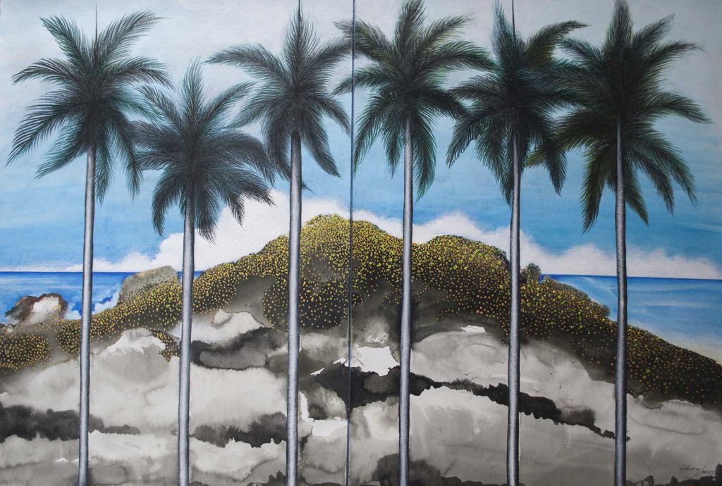 La exposición “Palmas del Caribe”, del arquitecto y acuarelista José Antonio Choy, fue presentada en el Centro Cultural de Quinta Dominica del 11 de marzo al 12 de abril del presente año. Compuesta por veintitrés acuarelas de distinto formato, “Palmas del Caribe” es un estudio artístico de las palmeras del Caribe y los paisajes que las acompañan. Es una inspiración que nace del libro sobre palmeras de Eladio Fernández y de la pasión del artista por el Caribe y su amada Cuba.